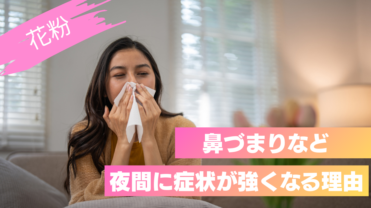 花粉症で夜に鼻づまりがひどくなるのはなぜ?寝ると悪化する原因を、自律神経やヒスタミンの働き、横になることで起こる鼻粘膜の…