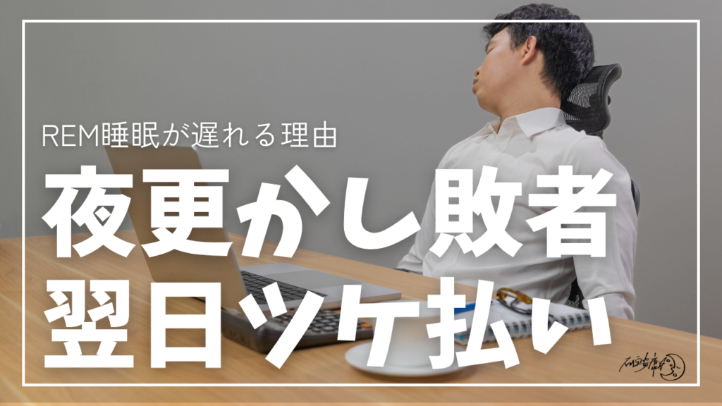 REMが後ろ倒しになると前半はN2・N3(深いNREM)に時間が割かれ、結果としてREM総量が削られやすくなります。